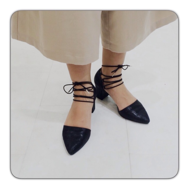 スマートなポインテッドトゥライン+太めヒールがモードな印象♬