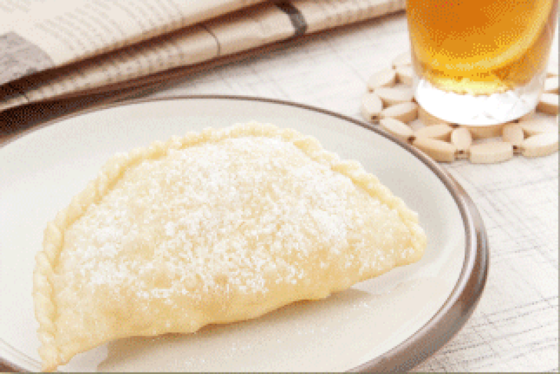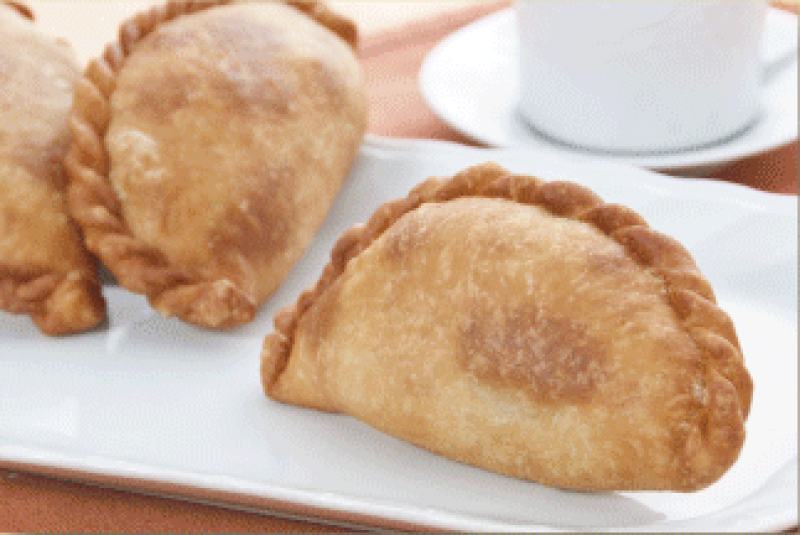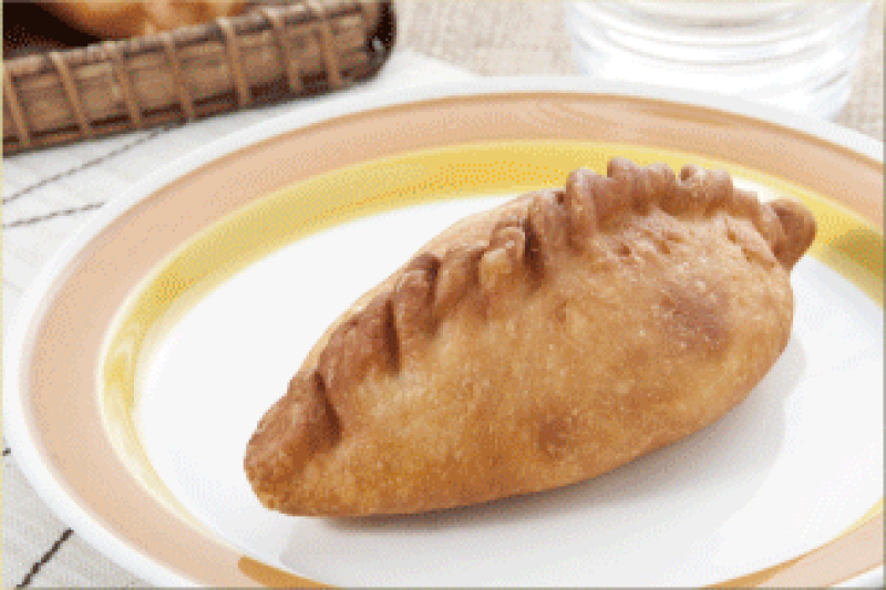 ◇エンパナーダ・デ・ヒゴテ 相性のいい鶏肉とジャガイモがとってもGood!= オムレツ風の具が、カリッと揚がったパイ生地に包まれた逸品は= まさに絶品♪