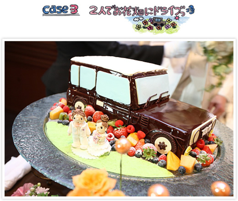 【2人でお花畑にドライブ=3】 車全体はすべて生のケーキ。車のパーツもすべて食べられます♪