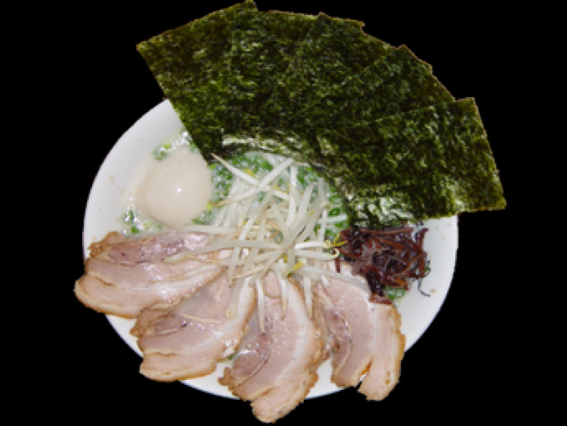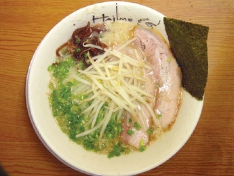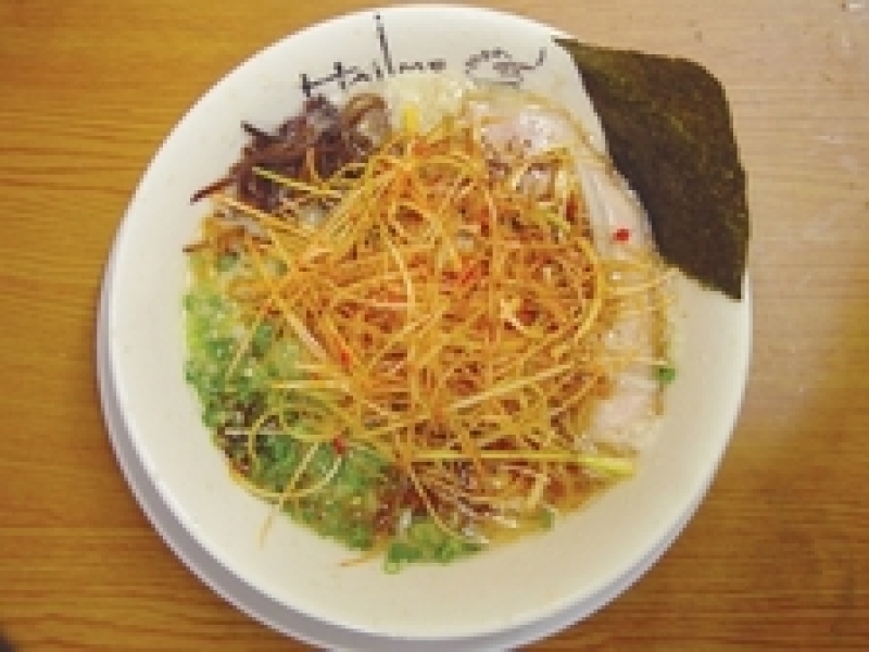 一番人気!「HAJIMEらーめん」¥680 上質背脂ととんこつスープでこってりと。 麺ひは、特選硬質黒小麦粉を使用。少し硬めの触感をお楽しみ下さい。