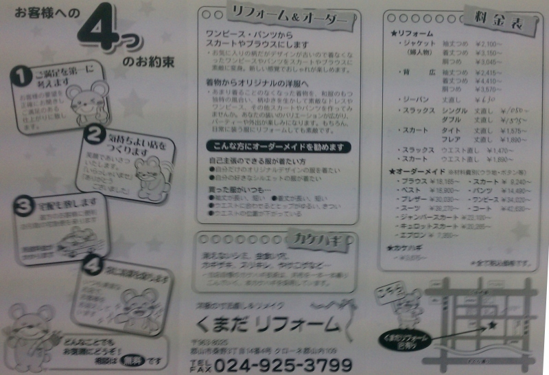 Kumada Reform tailor shop (mending only)