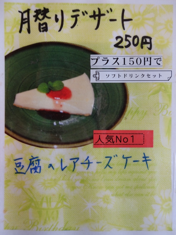 当店人気No.1「豆腐のレアチーズケーキ」です