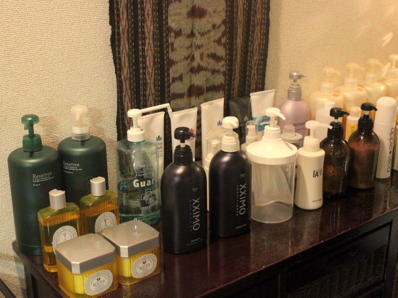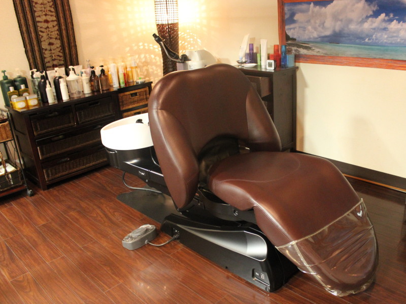 《シャンプーブース》 やわらかな照明と南国を思わせる インテリア