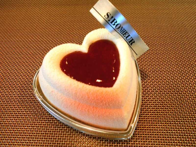 「ショコラブランルージュ」¥399 苺とラズベリーをたくさん使用したコンポートゼリーを、ホワイトチョコムースの中に詰め、ラズベリーソースをかけました。